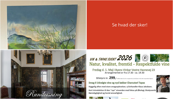 Samme aften, fredag den 1. maj, inviterer Byens Vinbar dig til en hyggelig vinsmagning, hvor du kan smage på seks udvalgte vine og nyde lækker charcuteri tapas. Vinhandler Klaus Jakobsen vil guide dig igennem en verden af økologisk og bæredygtig vinproduktion.